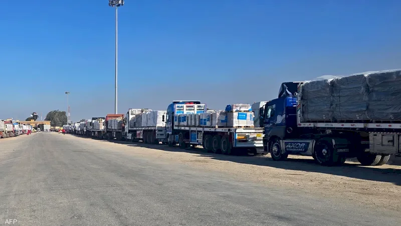 تحركت 400 شاحنة مساعدات إنسانية متنوعة إلى غزة، في السادسة من صباح اليوم الأحد (03:00 بتوقيت غرينتش)، وذلك من معبر رفح إلى معبريْ كرم أبو سالم والعوجة؛ تمهيداً لدخولها إلى غزة.